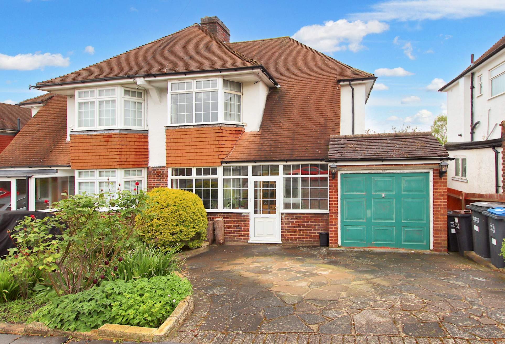 CHAIN FREE - 1930's semi-detached family home with three bedrooms, two spacious reception rooms, delightful south-facing rear garden, garage, and ample parking.