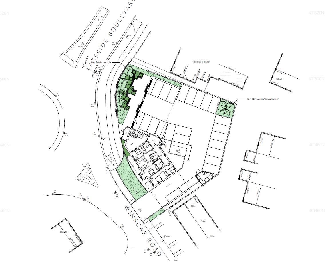 The site occupies a prominent corner position at the roundabout junction of Lakeside Boulevard and Winscar Road, forming part of the Lakeside 'ring road.' The scenic lake is directly to the west, enhancing the sites appeal.