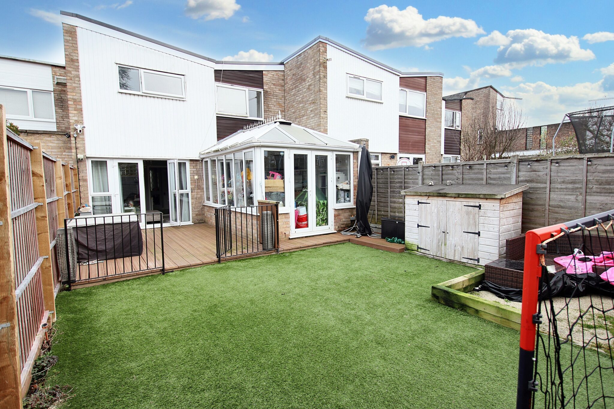 Nestled within the coveted Lawdon Development, this impressive 3-bedroom terraced house offers the idyllic setting for a growing family. Boasting a modern and stylish interior, the property features three well-proportioned bedrooms, an impressive fitted kitchen, a convenient downstairs W/C, and a sleek family bathroom. The bright and spacious conservatory is perfect for soaking in natural light and leads outside into the secluded rear garden, where a timber bar awaits, ideal for al-fresco entertaining or relaxing in a tranquil outdoor space. A garage en-bloc can also offers secure parking or additional storage solutions for added convenience.