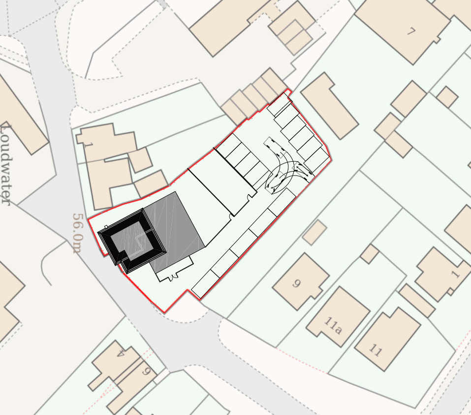 The site has a large car park to the rear, with access toward the side of the building providing eight car parking spaces for visitors of the now closed Public House. The approval increases to 10 spaces, EV charging stations, dedicated spaces for disabled users and bicycle capacity