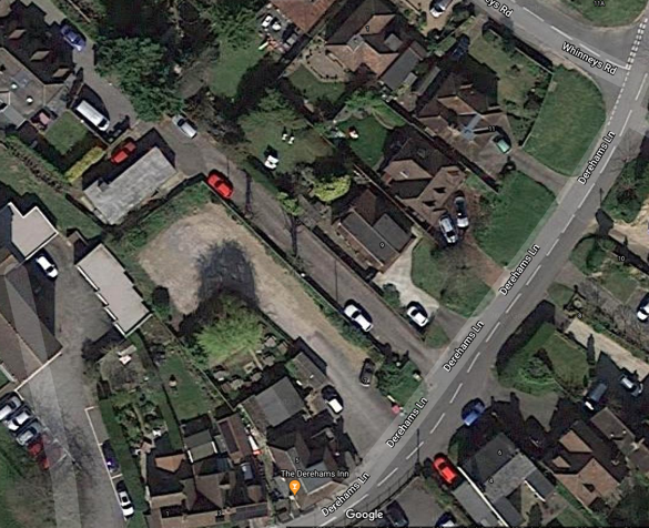 The site comprises a detached two storey former public house set on Derehams Lane, with on-site parking to the rear. The property is currently vacant and in run-down condition, offering clear scope for redevelopment in accordance with the approved scheme.